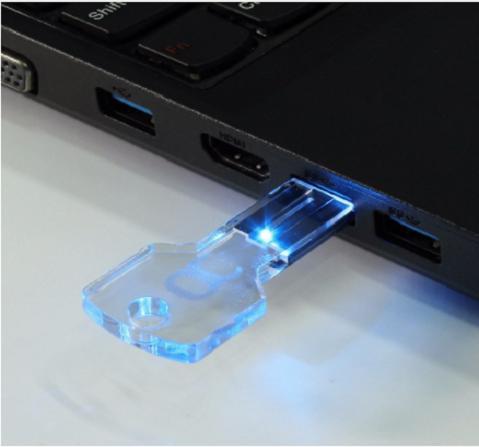 USB Flash Drive USB 2.0 Memory Stick LED Thumb Drive Crystal Transparent & Blue Key Shape